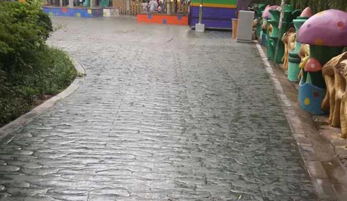 石家莊動物園總體規劃面積約4500畝,園內景觀布局采用非對稱式,以山勢起伏的隱風山為背景,把自然景色與人工建筑巧妙有機地結合在一起。動物園主體路面主要采用由萬樹建材生產的印花地坪材料鋪裝而成的仿石印花地坪,整體景觀自然美觀,仿石效果逼真顏色鮮亮。